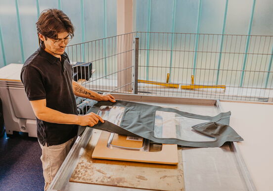 HF steht für Hochfrequenzschweißen und ermöglicht uns zum Beispiel PVC-Folien mit speziell beschichtetem Cordura zu verschweißen. Die daraus resultierende Schweißnaht ist wasserdicht. Positiv sind außerdem die Zeiteffizienz und Materialeinsparungen. Die beim HF-Schweißen am häufigsten verwendeten Materialien sind PVC (Polyvinylchlorid), auch als Vinyl bezeichnet, und PU (Polyurethan). Das Material kann dick oder dünn, verstärkt oder beschichtet sein. Es kann auch einfarbig, mehrfarbig oder gemustert sein.